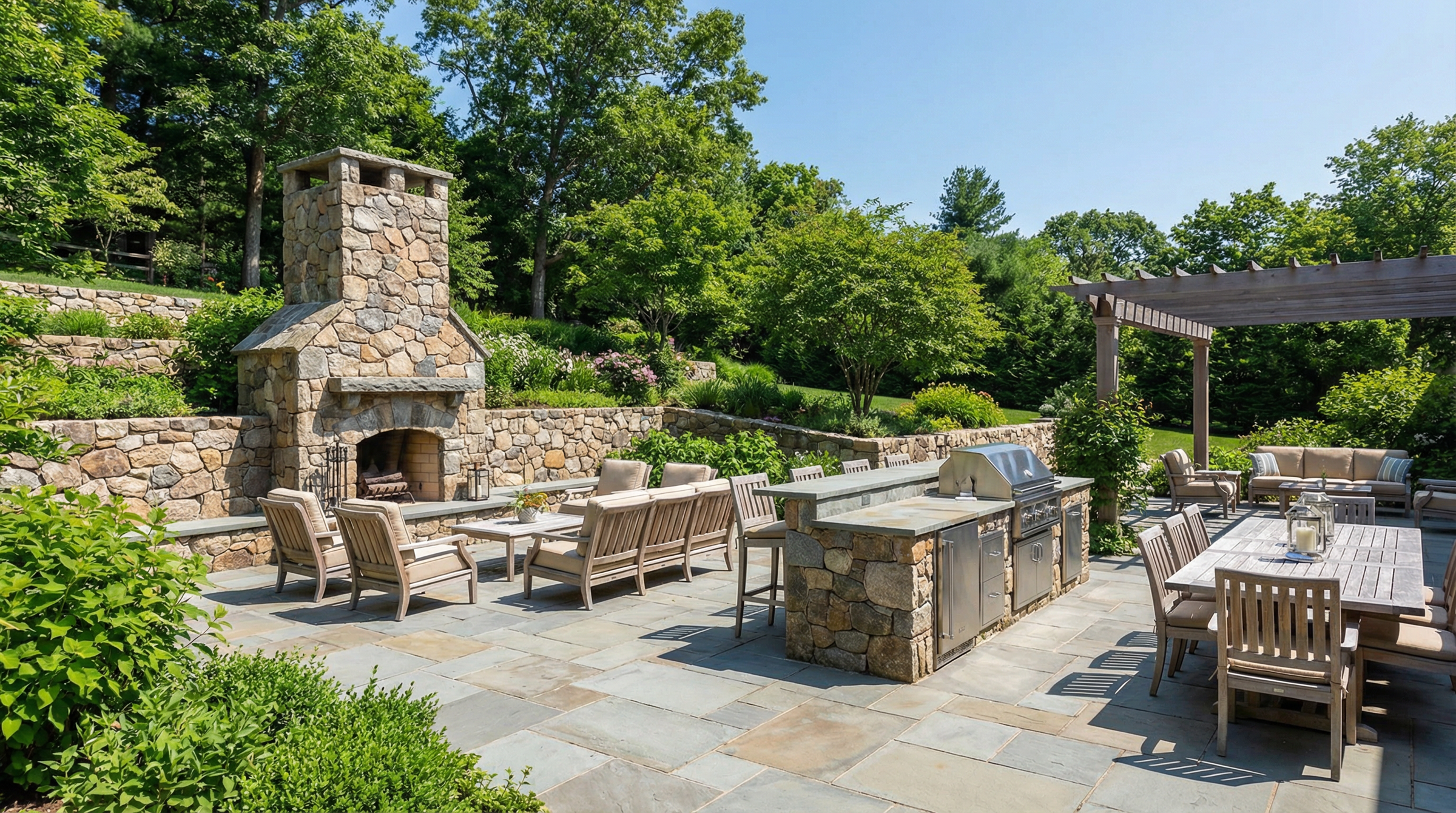 • Custom terraces, patios, and stone courtyards